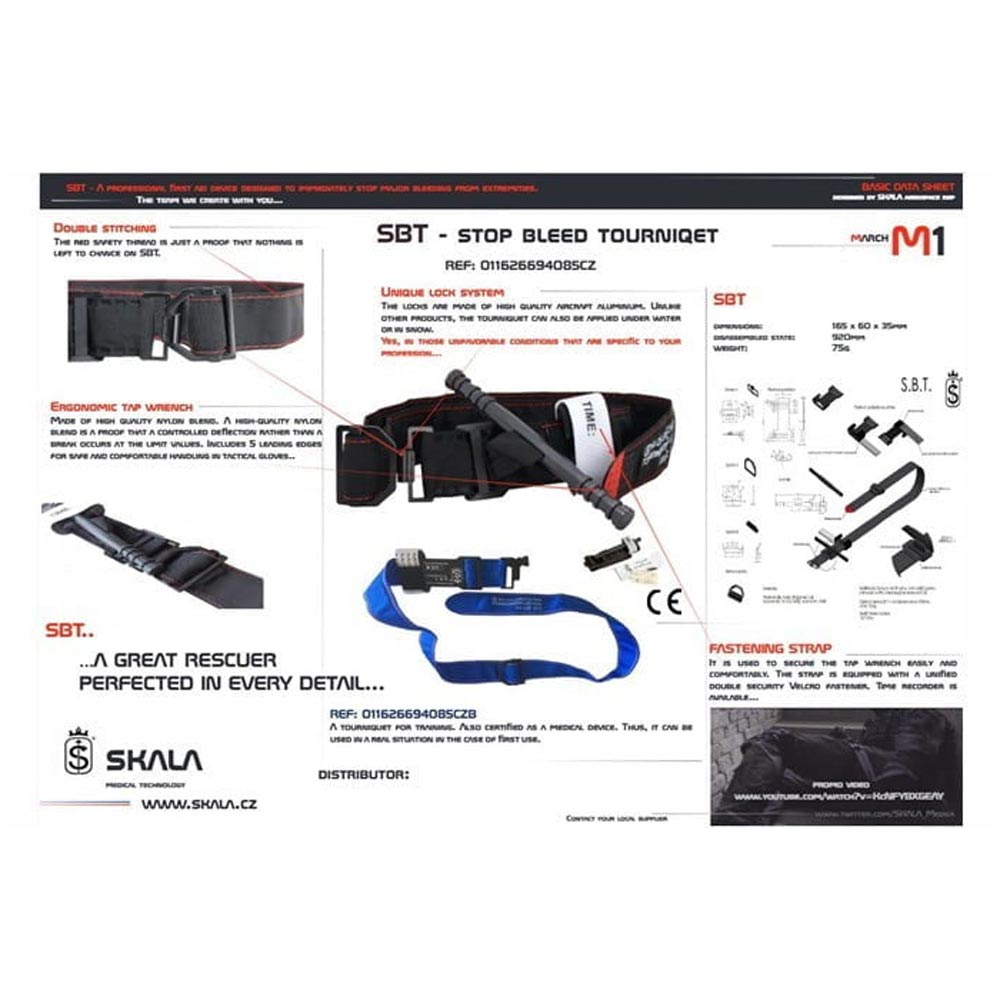 Το SBT (Stop Bleed Tourniquet) της SKALA Medical (Τσεχία) είναι ένα τουρνικέ σχεδιασμένο για χρήση σε ιδιαίτερα απαιτητικές συνθήκες επί του πεδίου. Ο κύριος στόχος του είναι ο αποτελεσματικός έλεγχος μεγάλης αιμορραγίας, με σχεδιασμό που δίνει προτεραιότητα στην ταχύτητα και την αξιοπιστία εφαρμογής.